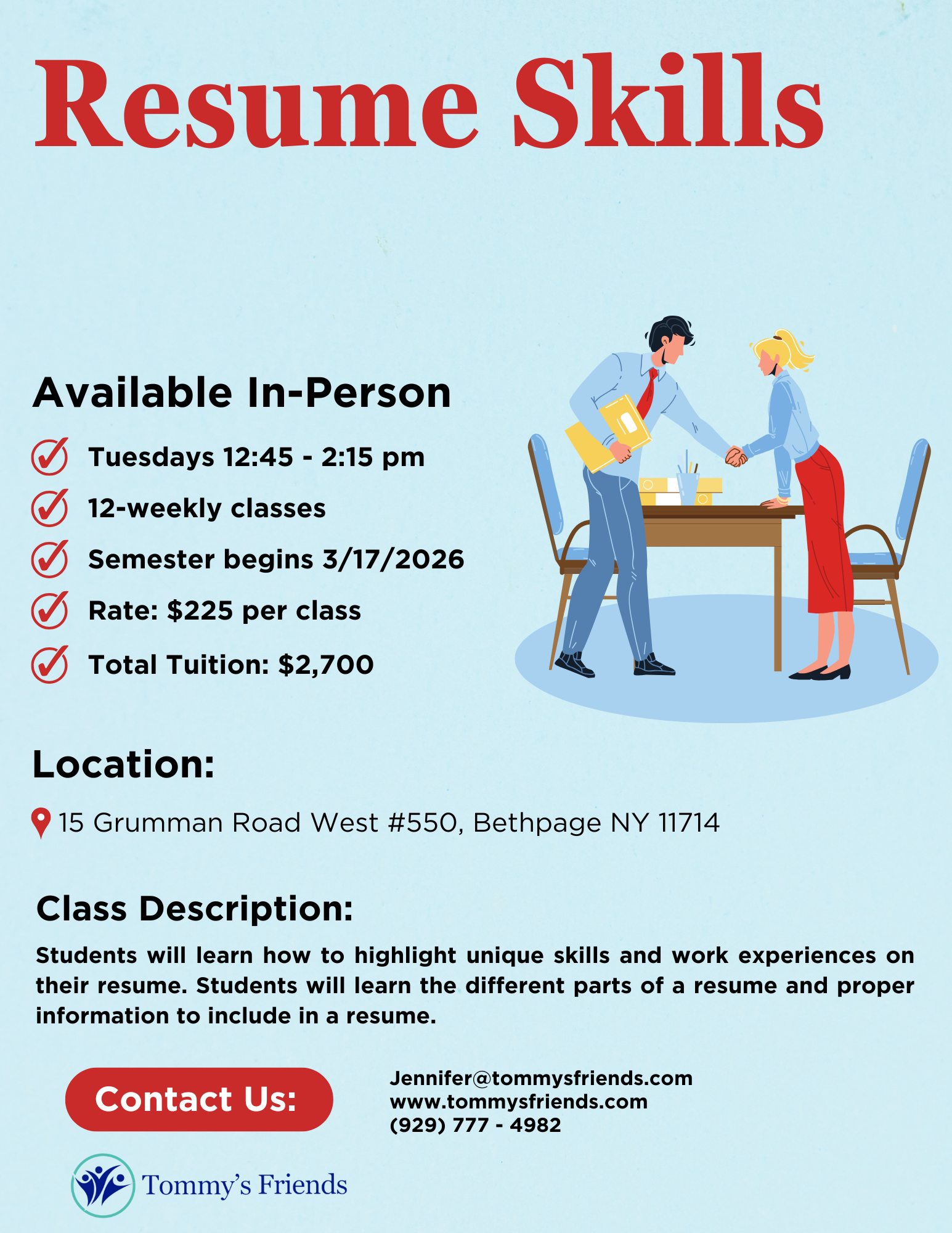 Adults will highlight special skills and interests, provide references, and enhance interview skills. Available in-person at our Bethpage location.