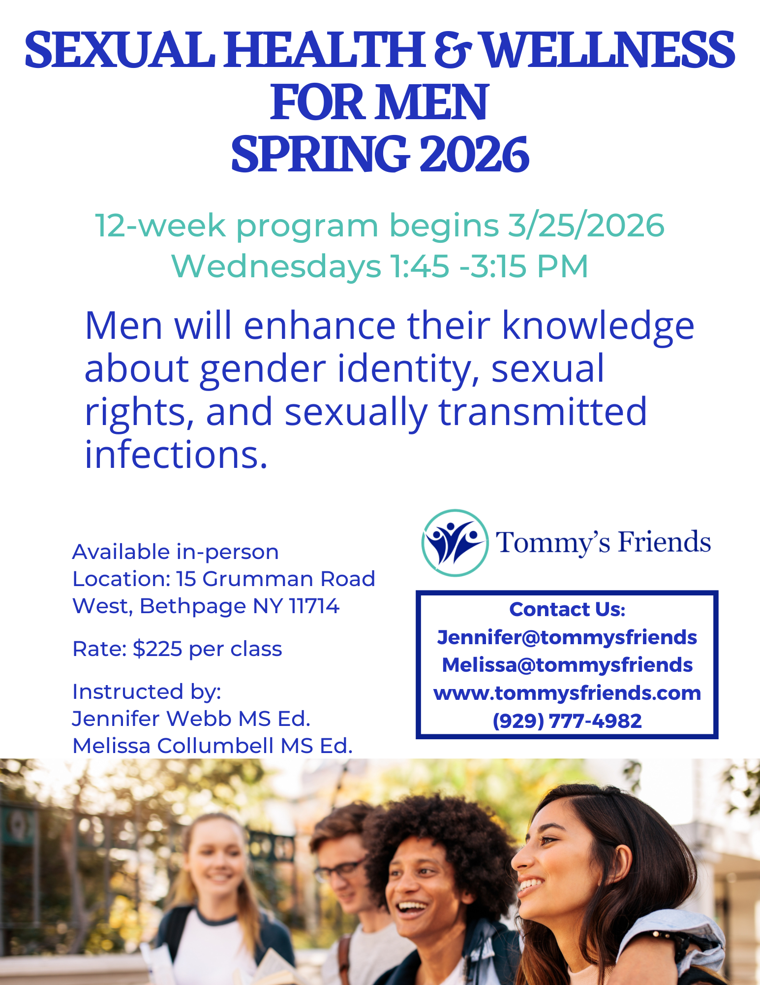 Men will enhance their knowledge about gender identity, sexual rights, and sexually transmitted infections. Available either virtually or in-person at our Bethpage location.