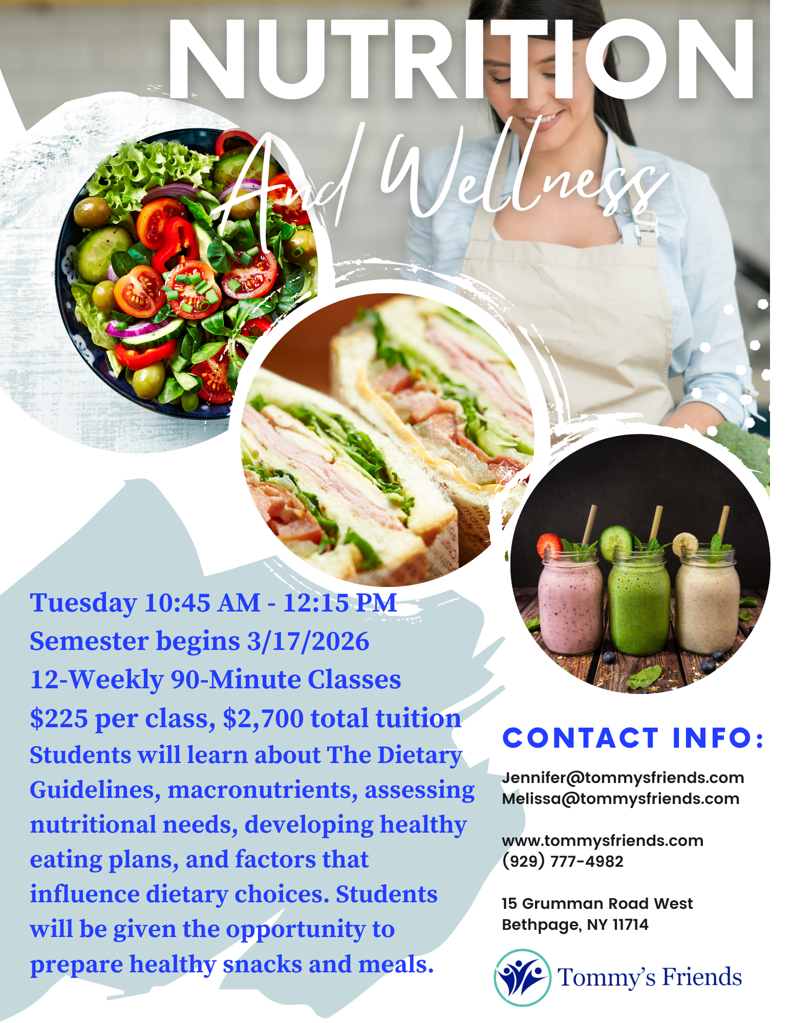 Students will learn about The Dietary Guidelines, macronutrients, assessing nutritional needs, developing healthy eating plans, and factors that influence dietary choices. Classes are available in-person at our Bethpage location.