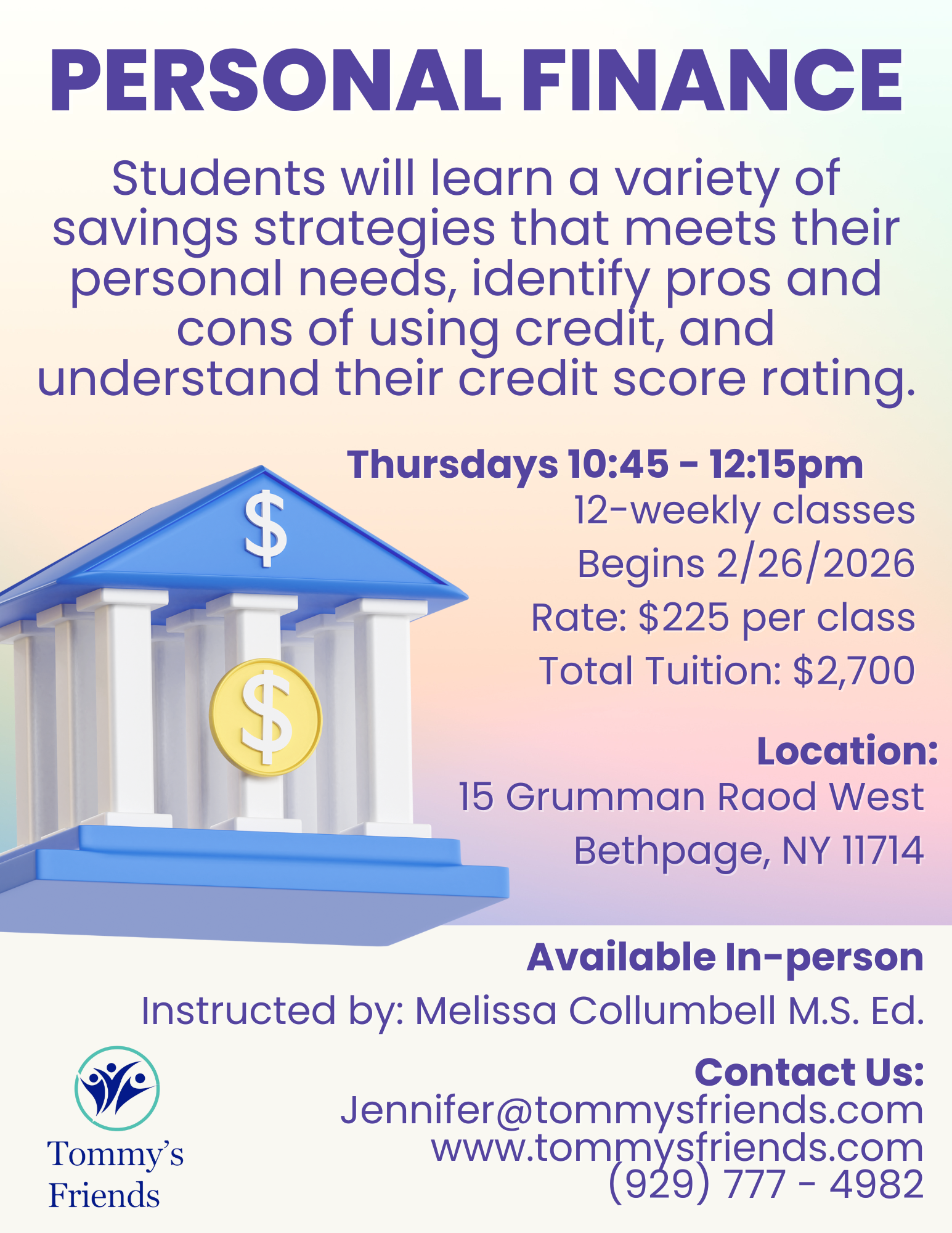 Adults will learn how to manage one’s financial resources effectively to achieve various personal goals. Available either virtually or in-person at our Bethpage location.